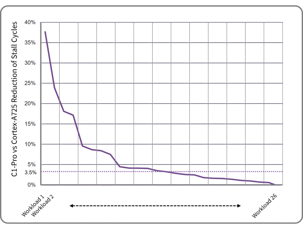 Figure 3. Arm C1-Pro stall-cycle reduction on various workloads.
